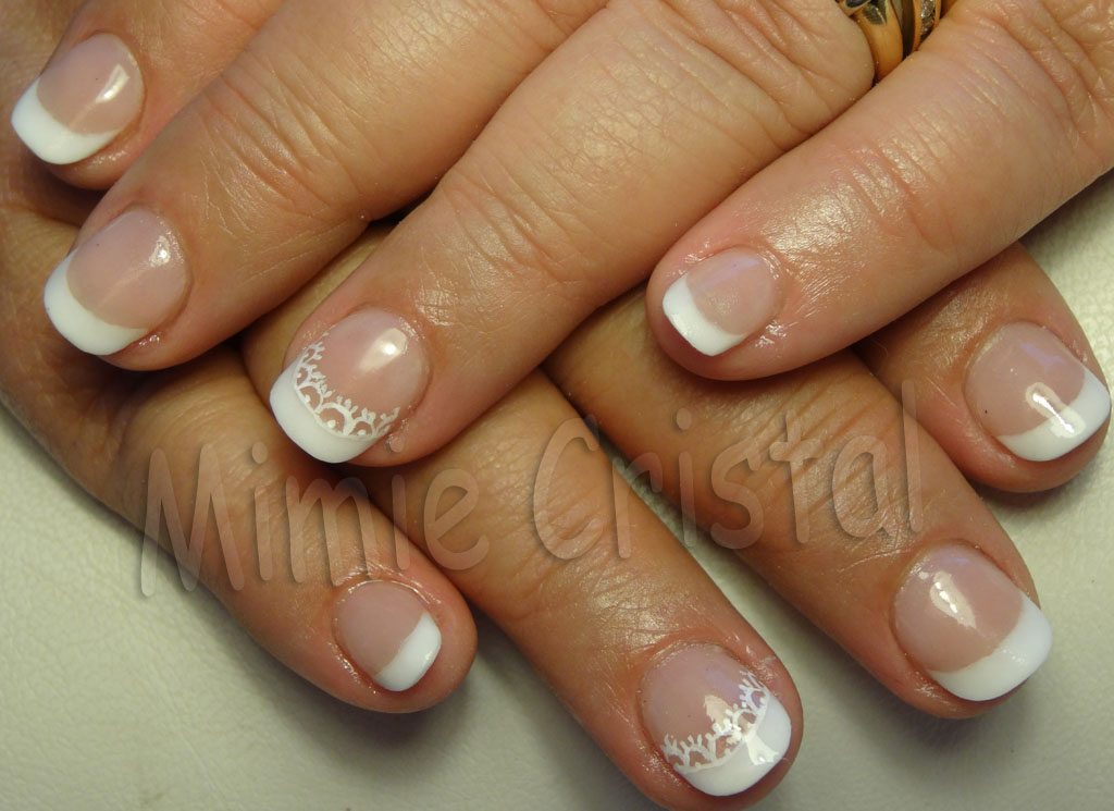 Et ça c'est Marine n°2, la kiné.... qui a réfléchi à ce qu'elle voulait ! Elle voulait des coulures sur les french des annulaires et des pouces ! Sympa non ??
