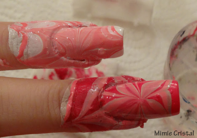 Mais je me suis pas démontée, j'ai fait un autre test la semaine suivante... et comme la clef du latex semble être le temps de séchage, je me suis dit que le watermarble allait être l'exemple idéal pour moi !
